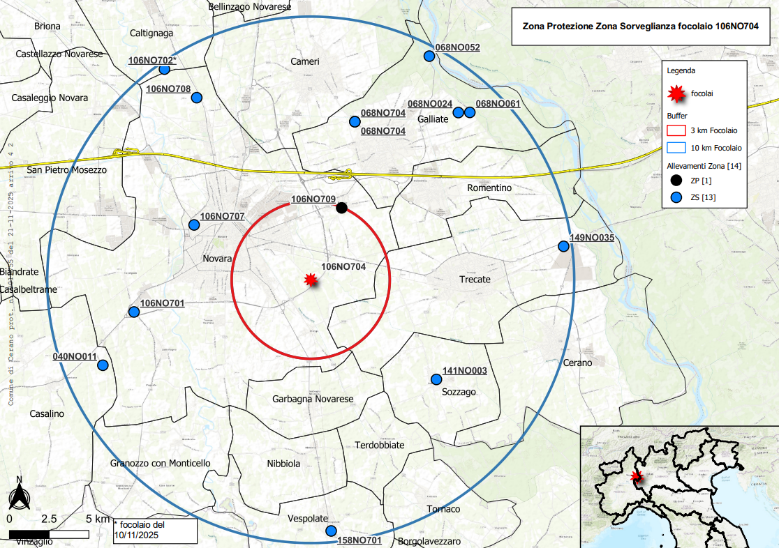 Ordinanza ASL N° 06 ZG BA 2025 – Focolaio di influenza aviaria ad alta patogenicità H5N1 presso stabilimento codice 106NO704 sito nel Comune di Novara – Istituzione di zone di sorveglianza
